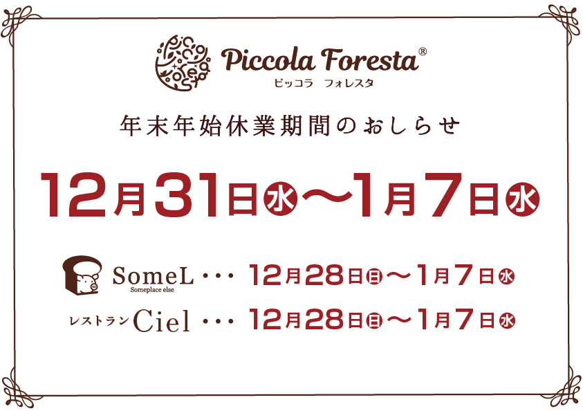 本年も一年、Piccola Forestaをご愛顧いただき、誠にありがとうございました。