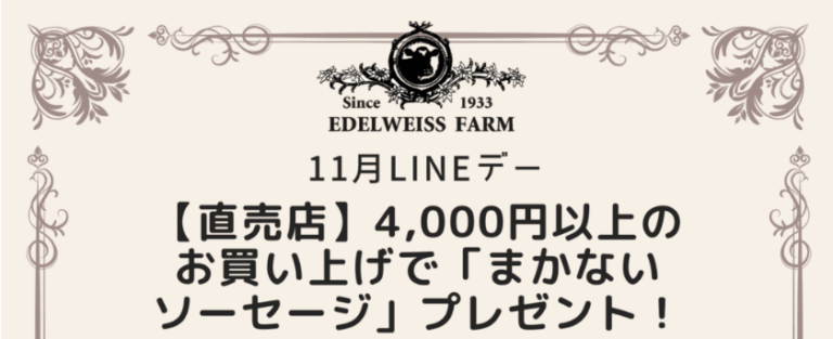 【1月20日(火)限定】LINEデー開催のお知らせ こんにちは。いつもエーデルワイスファームをご利用いただき、誠にありがとうございます。 今回は、LINE会員様限定のお得なイベントのお知らせです。 1月20日(火)は、直売店にてLINE会員様だけが参 […]