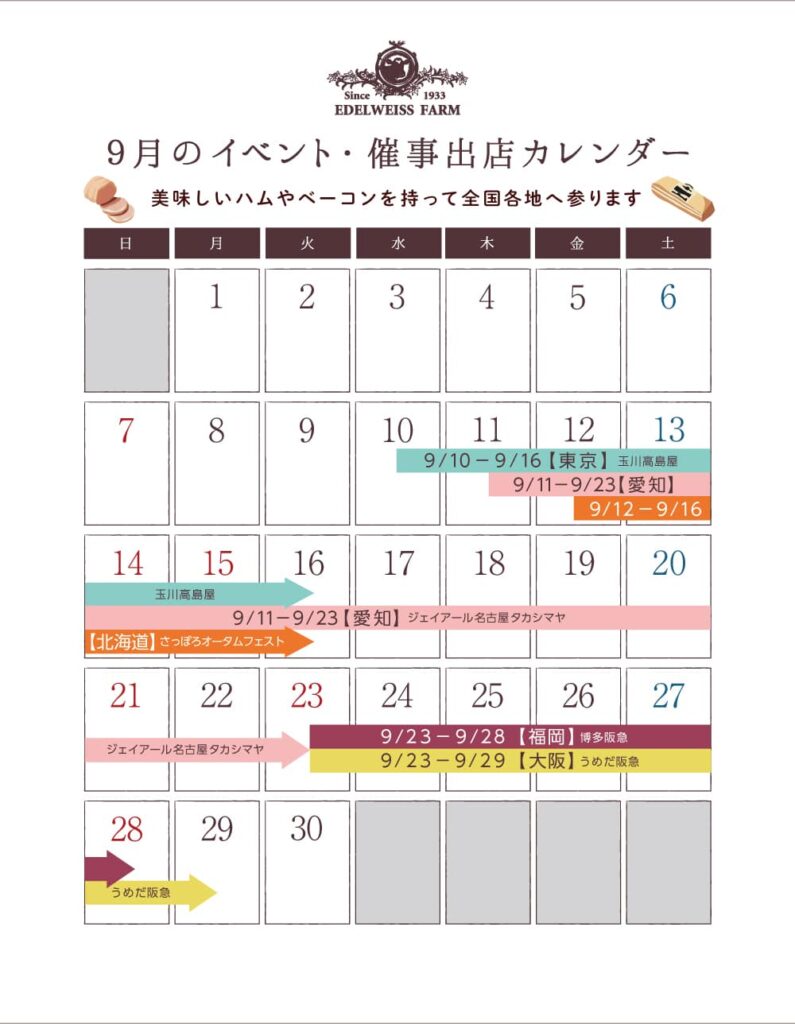 9月は催事とイベントで色々な地域にお邪魔します🐖