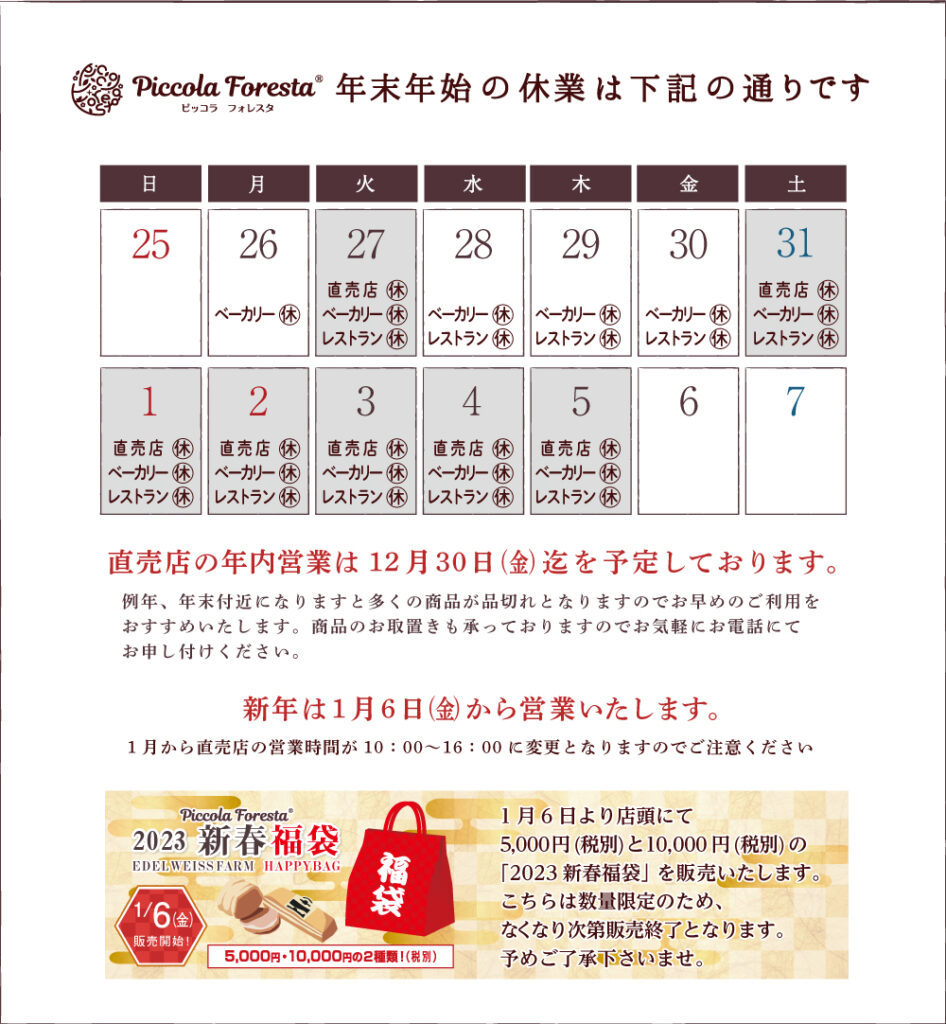 新年は1月6日からの営業となります。