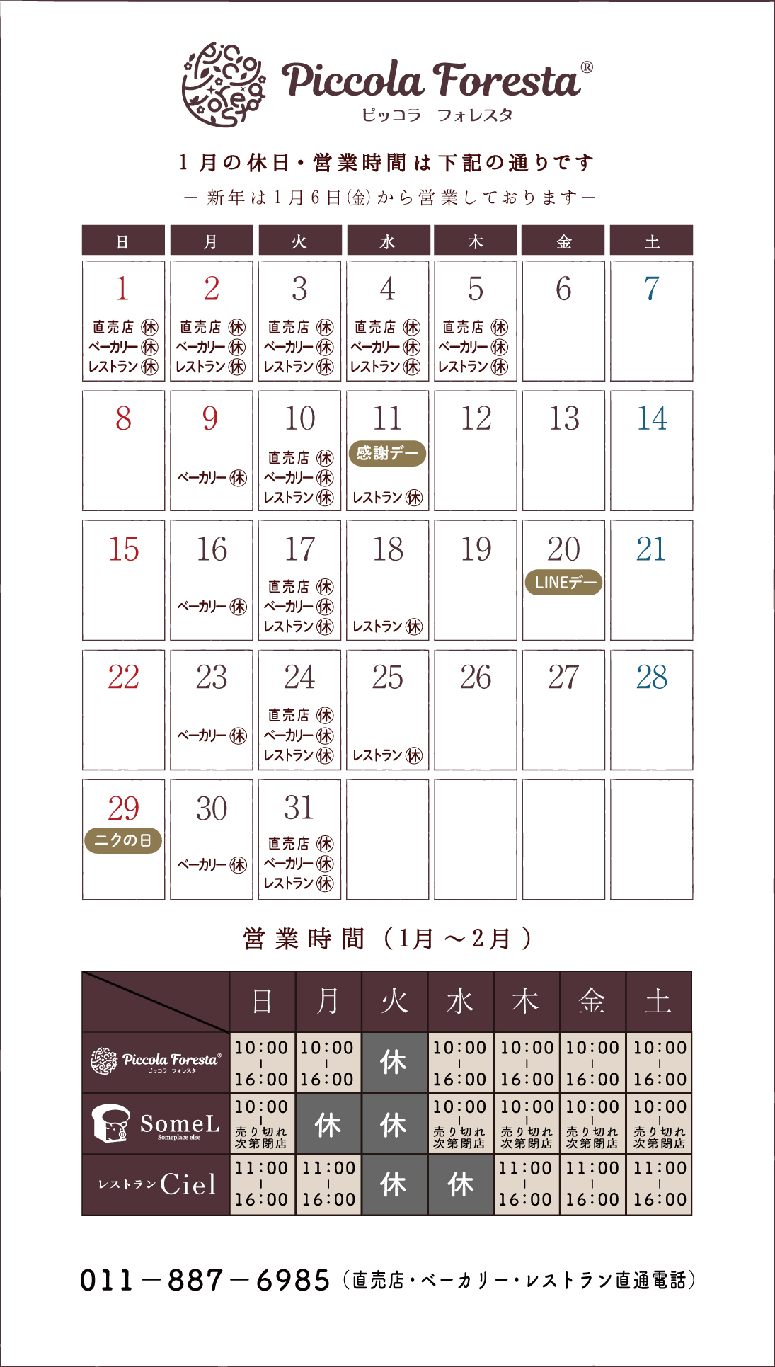 Piccola Forestaは新年1月6日(金)10時からOPEN!